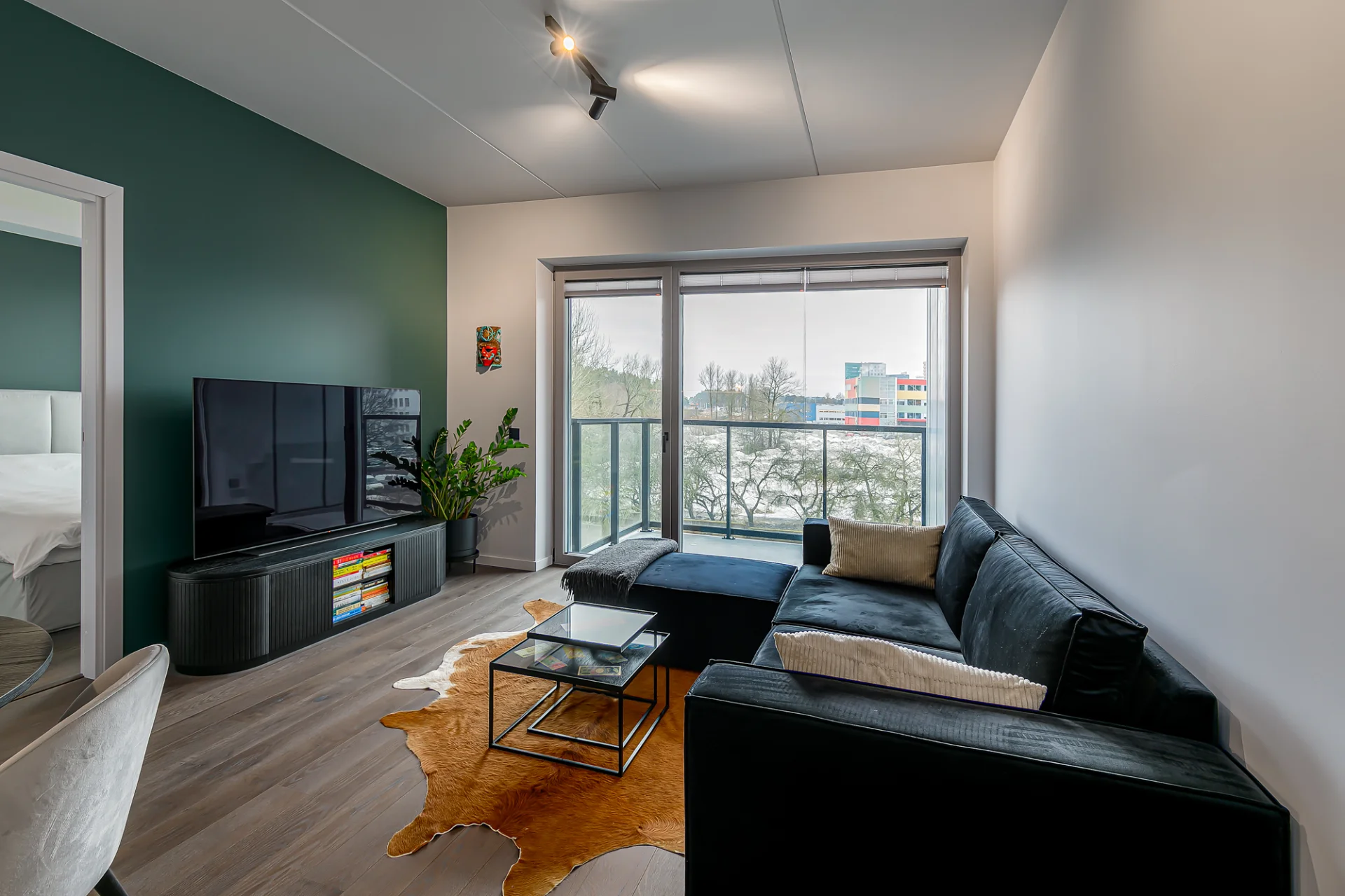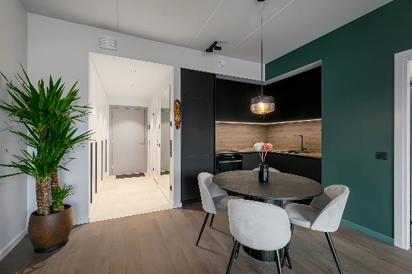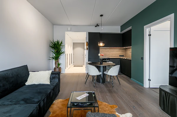 The 45.3 m² apartment on the 3rd floor is modern and bright. The apartment features high-quality materials and furniture. The rooms are 2.75 meters high.