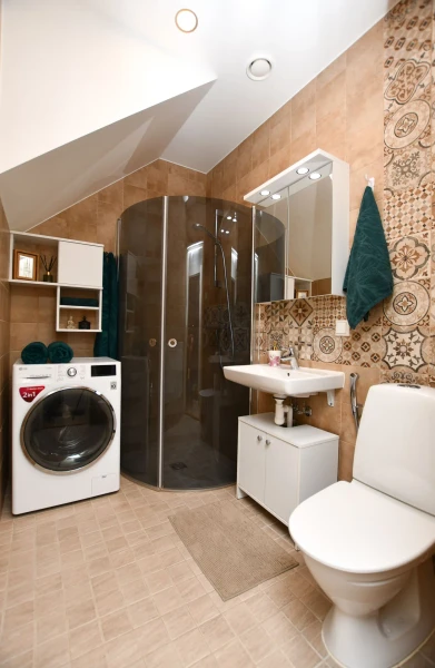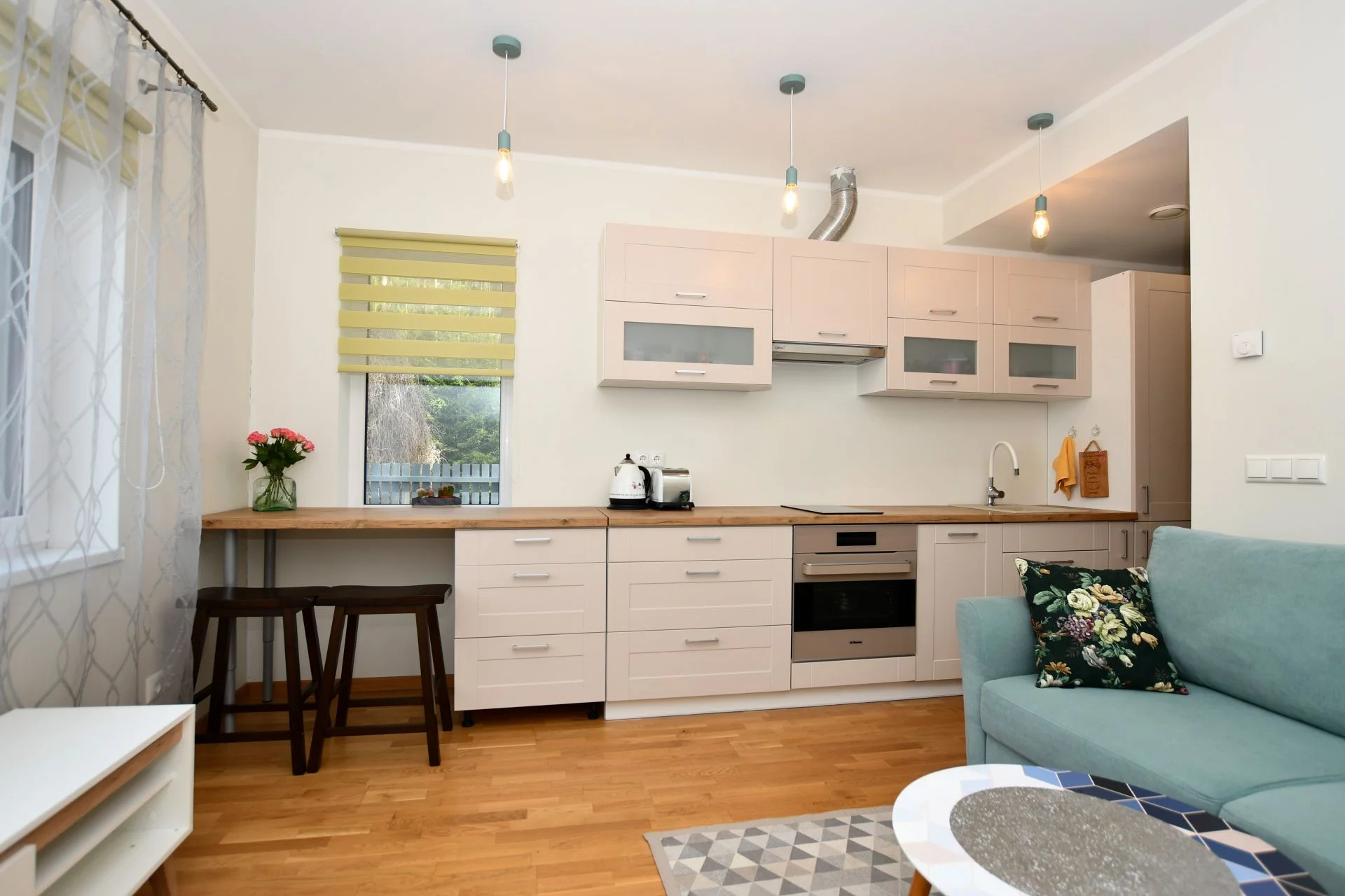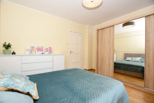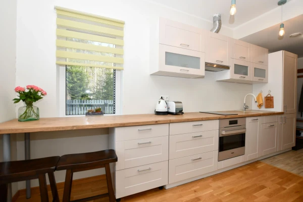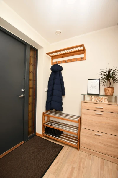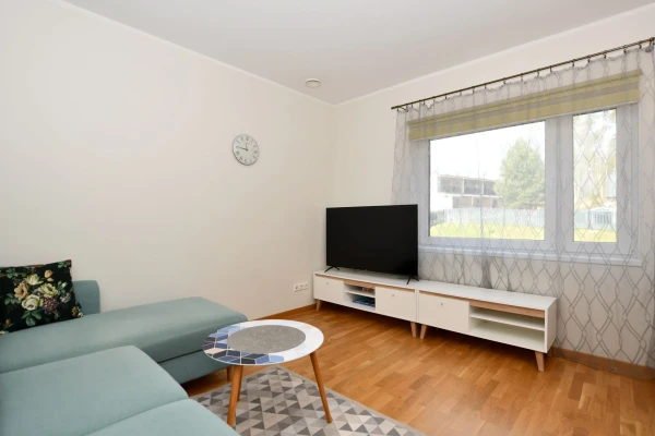 Esiku põrandal keraamiline plaat, tubades 3-lipiline tammeparkett, seinad värvitud naturaalsetes toonides; duširuumi seinu ja põrandaid katab keraamiline plaat. Korteri üldseisukord on hea, kulum minimaalne. Köögis kvaliteetne eritellimusel mööbel integreeritud tehnikaga, soovi korral on kogu piltidel nähtav lahtine mööbel hinna sees.