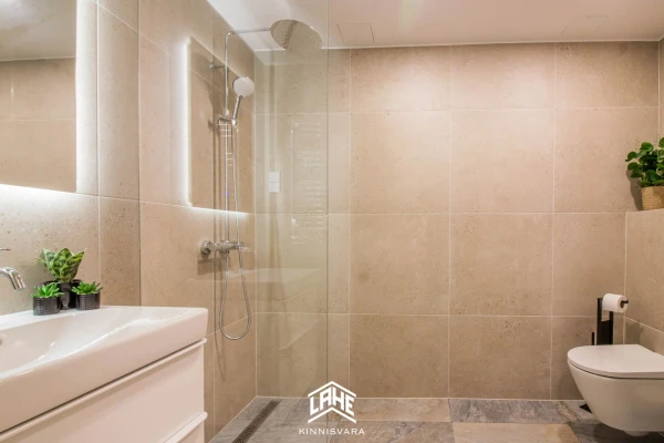 Pesu- ja tualettruumide seinad ning põrandad on plaaditud ning sisustatud kvaliteetse sanitaartehnikaga. Eluruumide seinad on viimistletud heledates toonides, luues avara ja valgusküllase üldmulje.