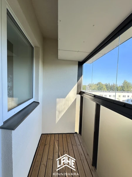 See läbi maja planeeringuga 3-toaline korter asub viiendal korrusel, mis tagab maksimaalse privaatsuse. Korterist avanevad vaated mõlemale poole maja – elutoatoa ja köögi aknad on vaatega maja ette, mõlema magamistoa aknad vaatega maja taha.